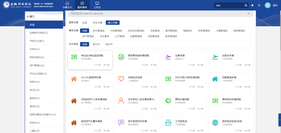 之前,学校线上办事服务未实现闭环,如学生证补办等学生高频事务的办理,仍需要学生奔走多个业务部门之间,繁琐的线下流程审批和确认影响到相关教职工的工作效率。