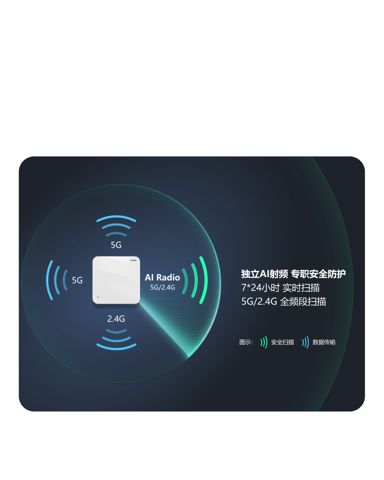 内置额外射频AI Radio,独立进行实时、全频段安全扫描,避免传统分时段、单频段的扫描盲区