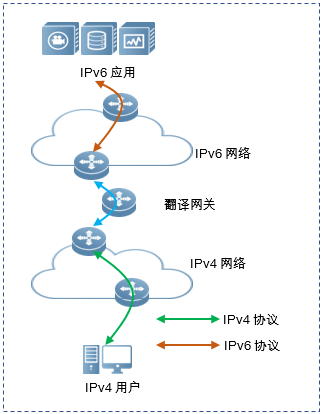 地址协议转换技术对现有IPv4环境做少量改造(通常是更换出口网关),即可实现对外支持IPv6访问,部署简单便捷。