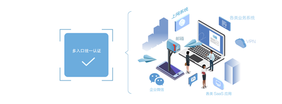 ●多入口统一认证:VPN、上网系统、邮箱、各类业务系统、各类SaaS应用(CARSI、WeLink、企业微信等)