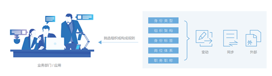 身份平台根据业务需求自动化构建并推送人员及组织结构,业务系统无需重复建立及维护组织结构