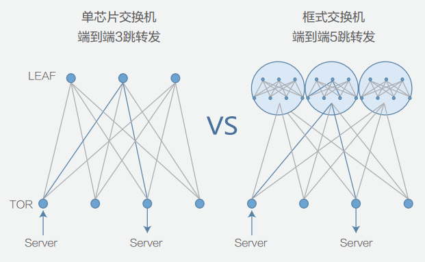 采用单芯片交换机,端到端转发三跳可达,相较于框式交换机转发延时降低了40%