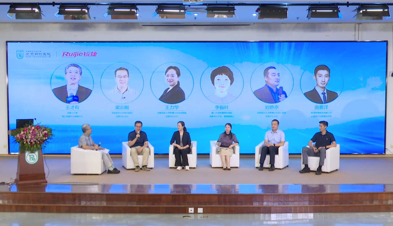 面临新的业务模式,圆桌论坛环节,来自医院和企业的五位专家,围绕“互联网诊疗业务如何快上线、保安全、好体验”“云桌面技术的选择”“新技术如何赋能智慧医院建设”三个议题展开了观点的分享与交流。圆桌论坛由国家卫计委统计信息中心原副主任王才有主持。