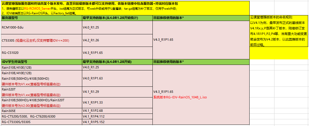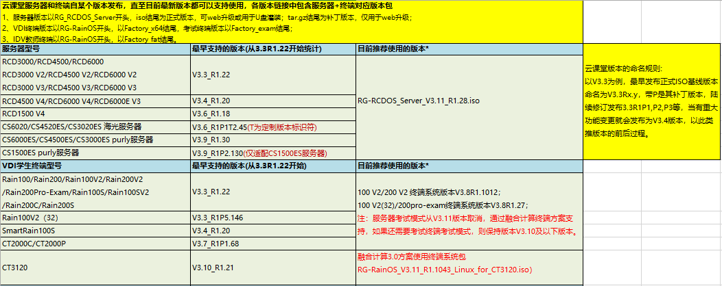 注:云课堂标准版/云课堂增强版/云办公融合版服务器及终端版本如何区分使用,当前最新最稳定版本哪里下载,尽情参考如下说明: