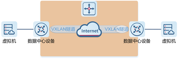 VXLAN利用UDP封装虚拟机发出的数据包,UDP数据包的外层IP/MAC头部均使用物理网络的IP/MAC地址。因此,除了VXLAN网络边缘设备,网络中的其他设备不需要识别虚拟机的MAC地址,减轻了设备的MAC地址学习压力。