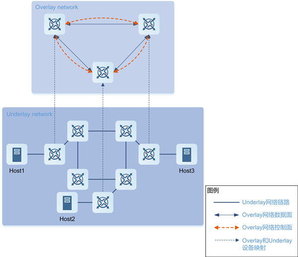 ●Underlay网络要求简单、易管理,同时能够为Overlay网络提供稳定、可靠的转发能力。
